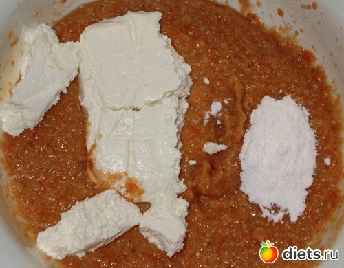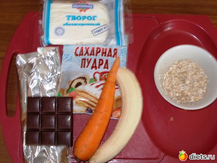 За счёт того, что банан и морковь дадут немного сока, наш творог не будет сухим.