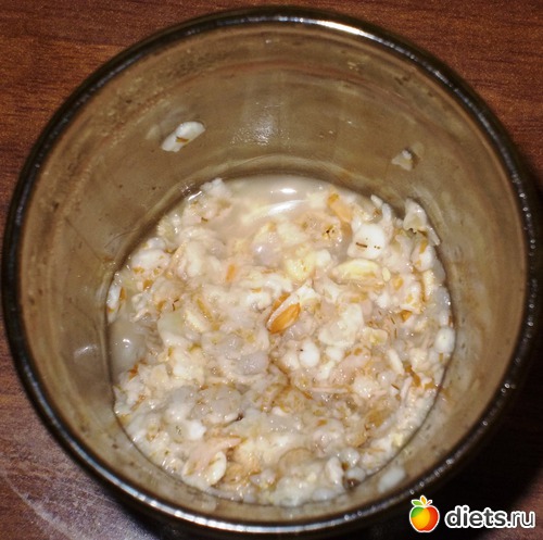 Завариваем наши хлопья кипятком (или варим кашу, если у вас это требуется).