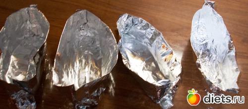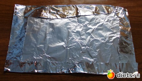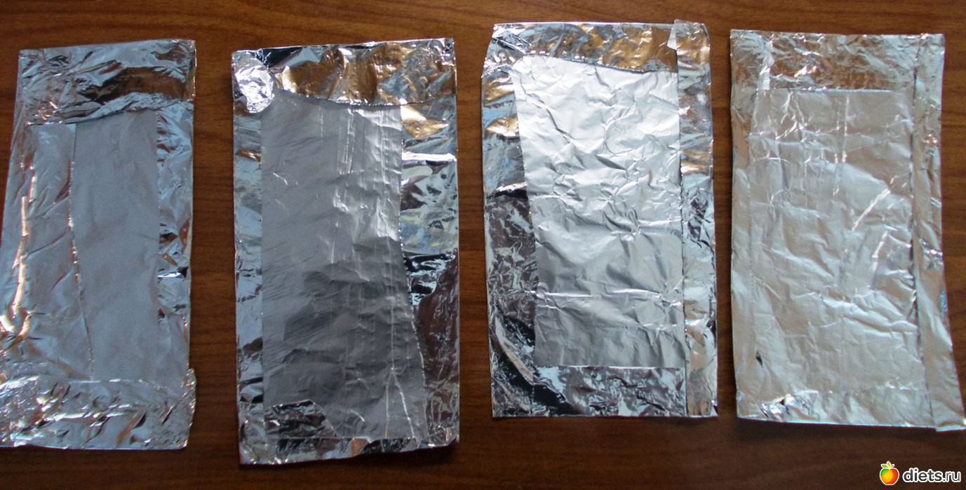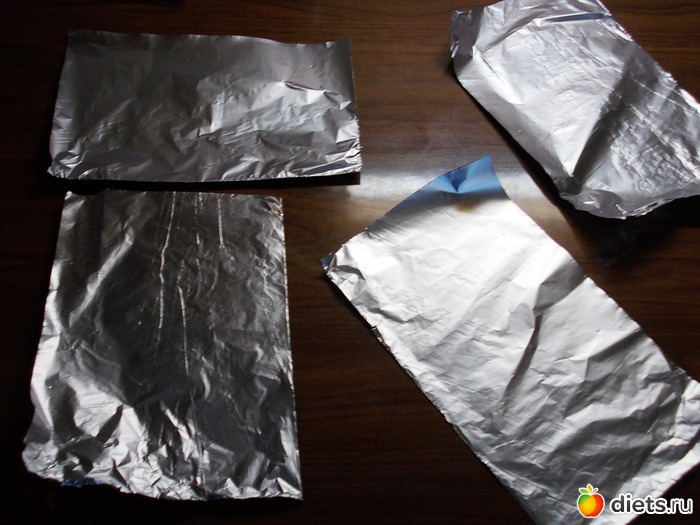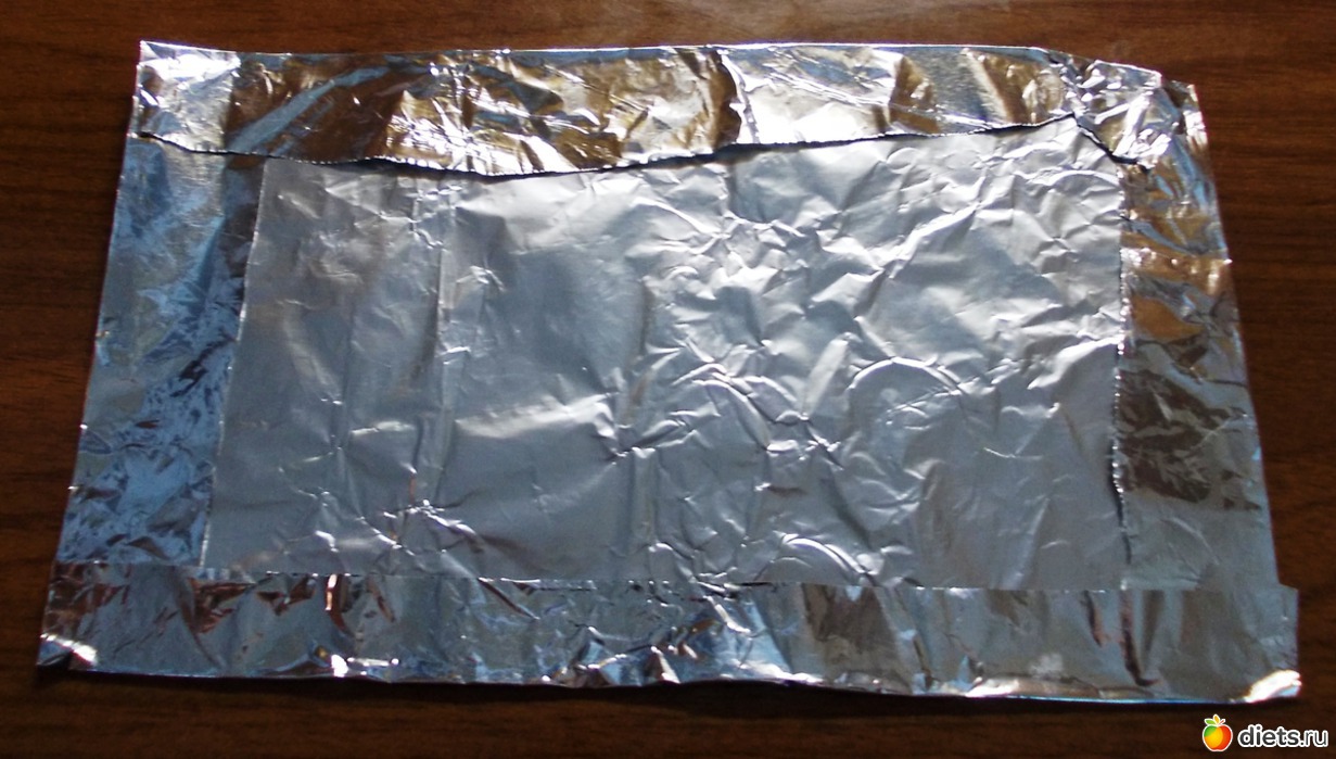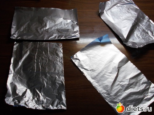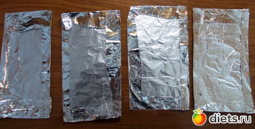 Нарезаем из фольги прямоугольники (4шт.), с каждого края загибаем по 1 см.