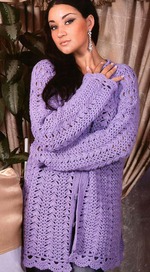 500 г Семёновской пряжи «Ольга ПШ» (50 % шерсти, 50 % акрила; 392 м/100 г) сиреневого цвета; крючок №3; 5 шт. пуговиц.