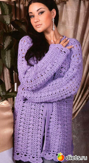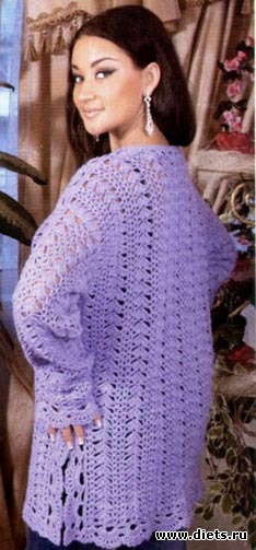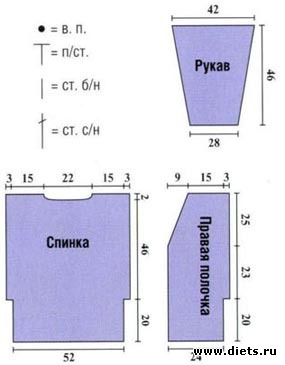 Низ рукавов, низ кофты и боковые разрезы обвязать с помощью крючка согласно схеме обвязки 1-го по 4-й ряд включительно.