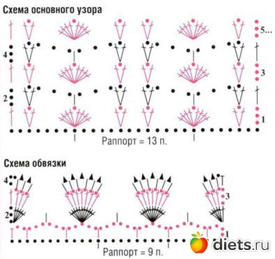основной узор: вязать согласно схеме: обвязка: вязать согласно схеме.
