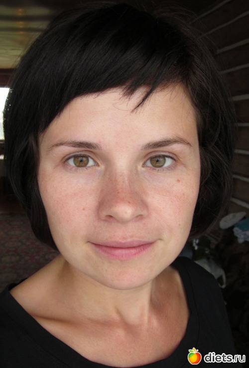 После тонального крема и пудры. Ну что хочу сказать... Бич этого лета - нос в веснушках - удачно замаскирован. Тональник наносится очень легко. По текстуре не плотный. Без пудры - создает эффект блеска.