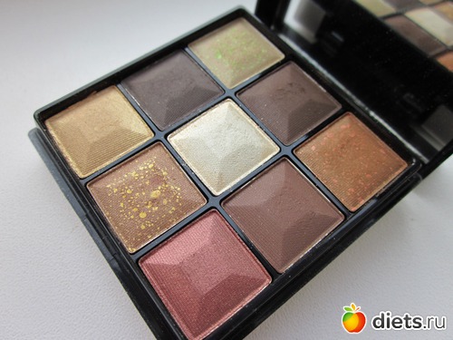 Для пудры был использован верхний ряд (а можно смешивать и все три ряда кистью). Для легкого сияния - второй ряд. И любые могут быть (и были использованы) в качестве теней для глаз). Тут поле для фантазии - гектар!!!