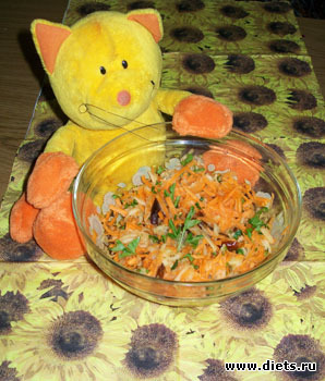 Оставляем салат примерно на10 минут, чтобы выделился сок из яблок и моркови. Перемешиваем – все, салат готов.