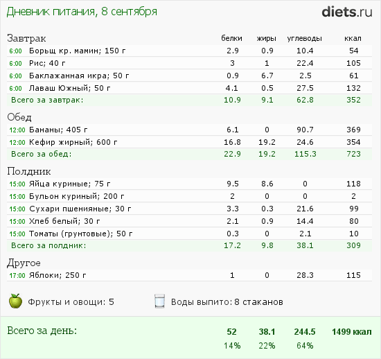 Калорийность продуктов