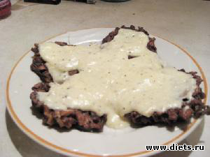 Готовые котлетки полить сырным соусом и подавать к столу.