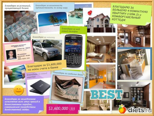 Конечно, следует помнить, что доска визуализации эффективна, когда все фотографии говорят о настоящем. И думать об этих изображениях следует в настоящем: не «я буду», а «я есть сейчас».
