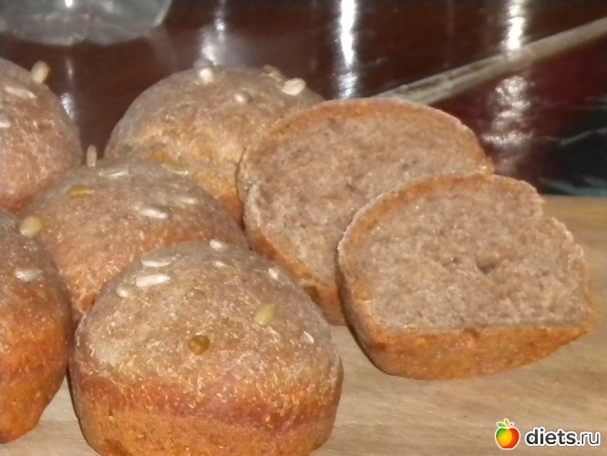 Далее, как обычно-сформовала булочки, закидала в формочки, оставила снова для под"ема. Можно украсить семечками
