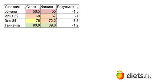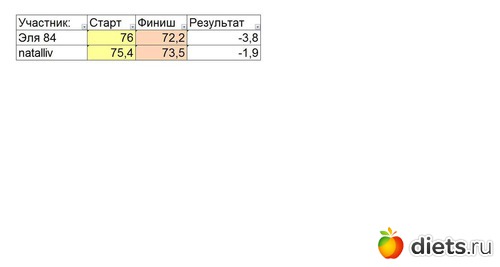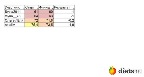Sveta2011, tayna__78, Ольга-Лёля, natalliv, Поздравляю!!! Вы молодцы - не очень быстро, но идете к цели, только давайте ускоряться! Ведь нам всем хочется добиться красивых форм, легкости и здоровья!