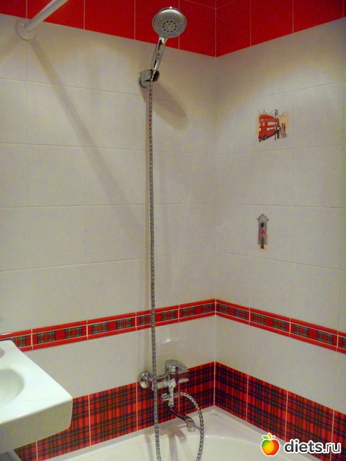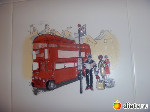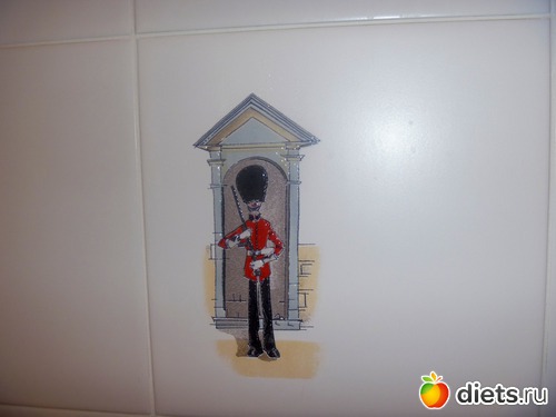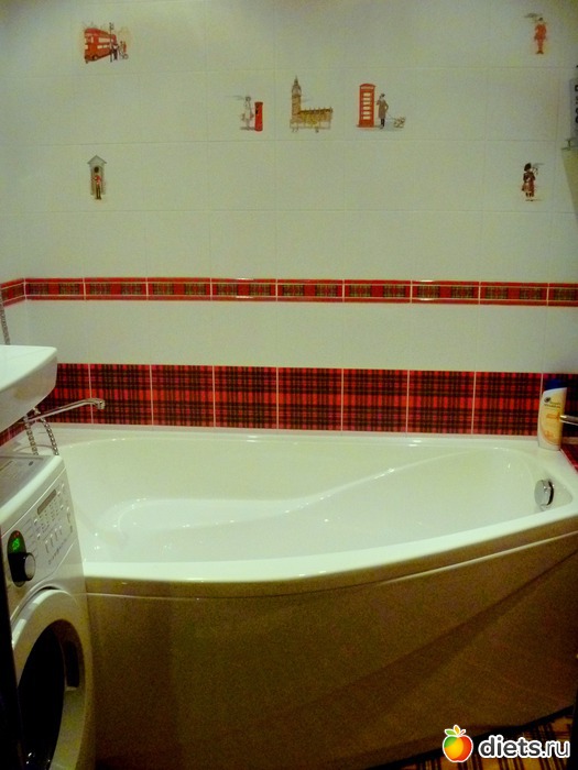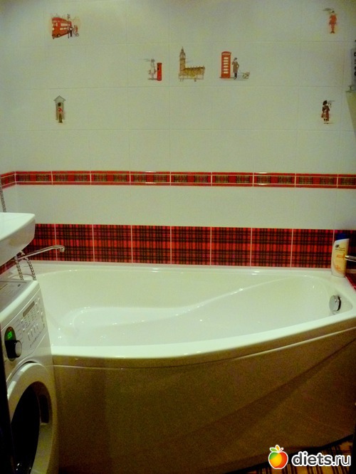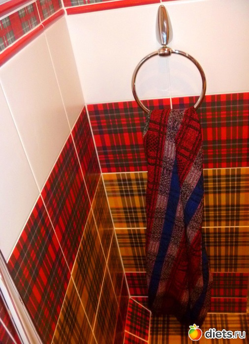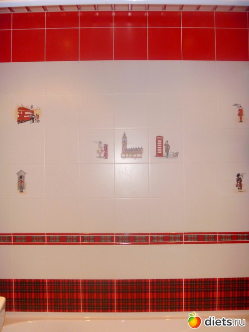 Теперь о керамической плитке. Эта плитка Британской коллекции, серия "Бейкер стрит". Клетка никогда не выходит из моды. А напольная плитка из желтой клетки хороша тем, что - когда ступаешь на нее голыми ногами, кажется, будто тебе постелили клетчатую материю. Замечательная имитация!