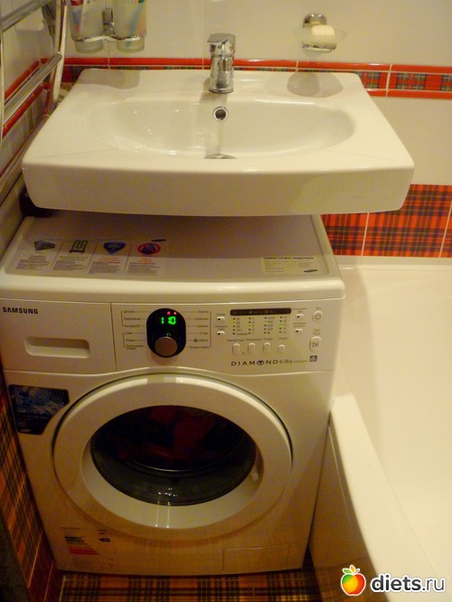 Умывальник был приобретен с учетом того, чтобы под него можно было встроить стиральную машину