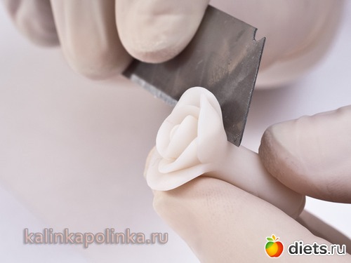 После того, как все лепестки уложены, обхватываем пальцами основание и немного ужимаем, чтоб сделать его тоньше.