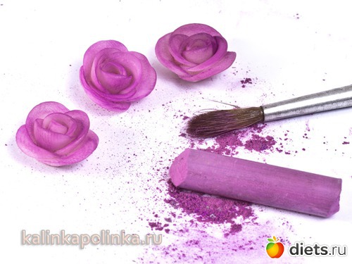 Итак, для работы нам понадобится полимерная глина полупрозрачная белая, из нее мы будем лепить розочки. Для тонирования розочек будем использовать пастель или тени, румяна, все, что можно превратить в мелкий порошок.