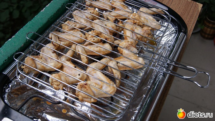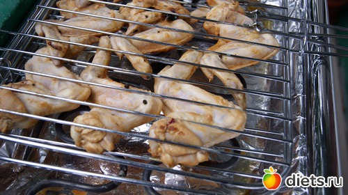 2. Куриные крылышки замаринованные в горчице и томатной пасте с чесночным уксусом и луком. (Ну кожица конечно лишний холестерин, но весь жир стек приготовлении)