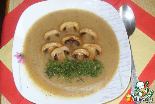 При подаче положить в суп поджаренные грибы, посыпать рубленым эстрагоном.