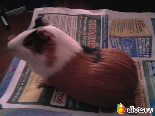 Она у нас не очень длинная, а вес у нее 1300 гр в ноябре был. ветеринар велел похудеть ей граммов на 75-100, а она с тех пор, кажется, еще округлилась. Причем вес так равномерно по всему телу, а не как у беременной свинки -- в форме баклажана.