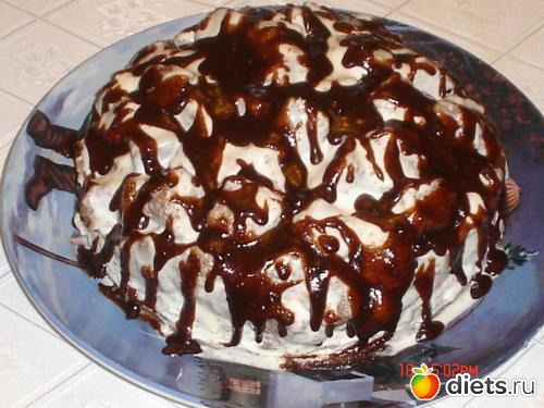 Готовый торт залить оставшимся кремом, и убрать в холодильник минимум на 30 минут для пропитки.