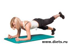 Чтобы сделать упражнение более эффективным, при выполнении планки в медленном темпе поднимаем-опускаем поочередно правую и левую ногу, сохраняя при этом исходное положение корпуса.