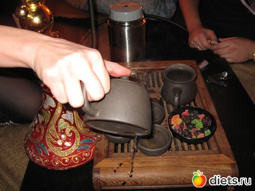 В сочетание с сухофруктами, такой зеленый чай не просто лакомство, но и идеальное поддержание веса (но мы не устояли и заказали себе еще восточные сладости и мороженое)!