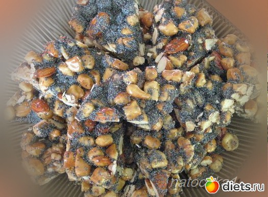 Орехи, наверно, можно брать любые, но рекомендую, чтобы миндаль всё-таки присутствовал (по моему опыту, он пользуется наибольшим успехом).