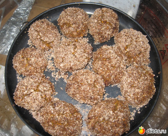 Ложкой набираем формируем котлеты и панируем в пшеничных отрубях.