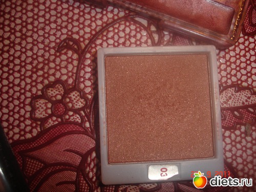 Тональный крем наносим спонжиком, предварительно смочив его в воде и отжав. Тон получается ровный. Пудра с блеском.
