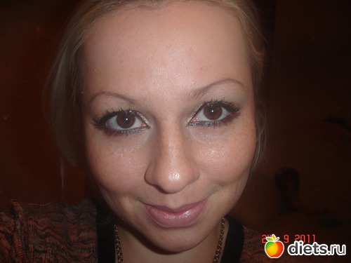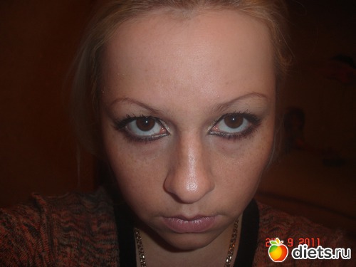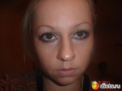 Девочки, я как всегда в самый последний момент. ЗДРАСЬТЕ!!! Блин, компьютер фото не загружал, а это моя любимая тема, подвел меня дружочек(комп). НУ, что делать, уж примите мою работу. Представляю вам клубный макияж. Конечно он наносится только вечером и только вечером он смотрится очень красиво.