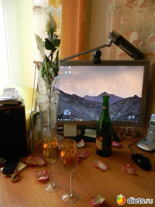 Вообщем, девы, вхожу я обратно, когда позвали, а там вся комната в лепестках роз, розочка в вазе и вино с двумя бокалами...