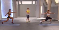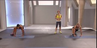 Тренировка состоит из нескольких интервальных сегментов (по-моему, три, если не запуталась), каждый из которых, в свою очередь, из нескольких упражнений на нижнюю часть тела и повторяется два круга.