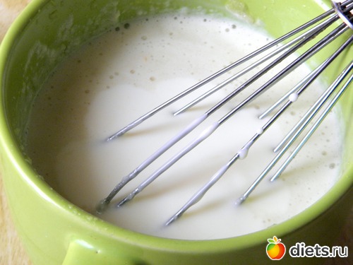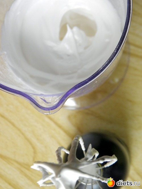 Яичные белки с сахарной пудрой взбить миксером до устойчивых пиков.