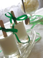Частями вмешивать взбитые белки в яблочно-йогуртовую массу. Перемешивать аккуратно, чтобы белки не потеряли свою воздушность. Разложить смесь по формочкам-стаканчикам, вставить деревянные палочки. Убрать стаканчики в морозильную камеру.