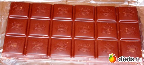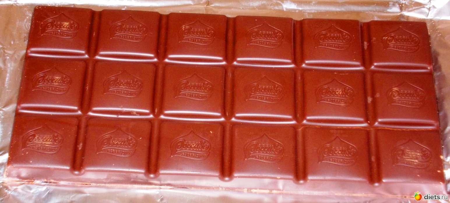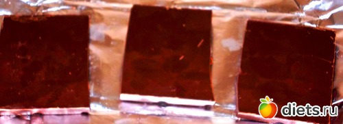 Шоколад (желательно тёмный с высоким содержанием какао) в среднем 520ккал. на 100гр)). Возьмём плитку шоколада и разделим на 3 части и на наше блюдо будем использовать