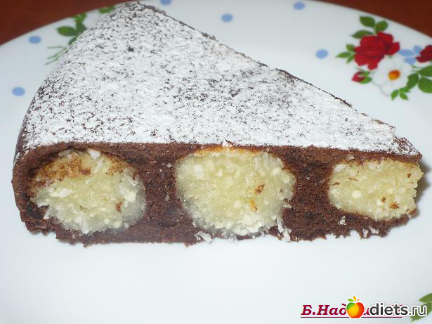 Сверху можно залить шоколадной глазурью или посыпать сахарной пудрой.