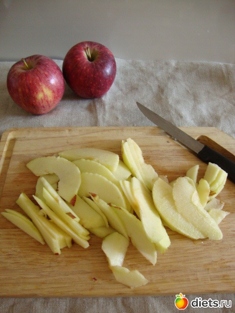 яблоки почистить и нарезать тонкими пластинками.
