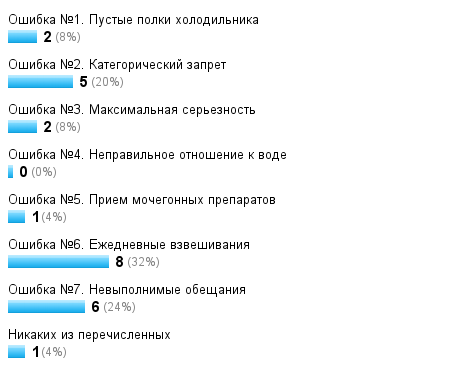 Психологи говорят, что одна из наиболее распространенных ошибок худеющих – отсутствие чувства юмора. Не относись к процессу похудения слишком серьезно – играй, выдумывай, фантазируй. Вообрази себя актрисой, которой нужно сбросить несколько килограммов для получения интересной роли, или фотомоделью, которой предстоит скоро демонстрировать шикарные платья для бала. Многим своим пациентам Марианна Трифонова предлагает ощутить себя научными сотрудниками, которые выполняют важное правительственное задание, изучая влияние пищи на свой собственный организм! Поскольку цель – достижение результата максимально гуманным способом!