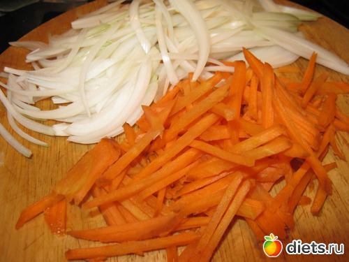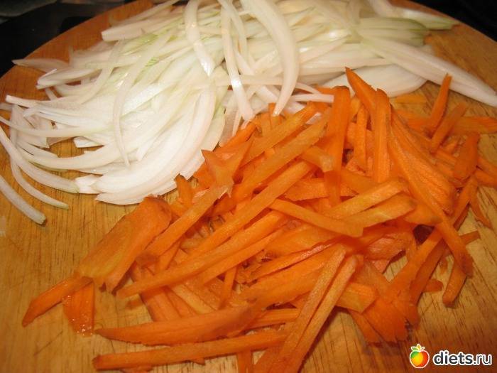 Морковь натереть на специальной тёрке тонкими длинными брусочками.