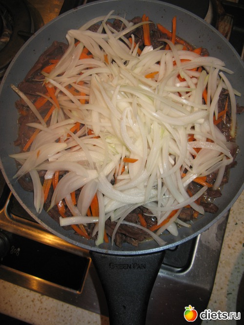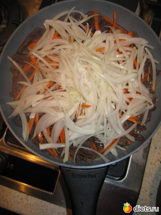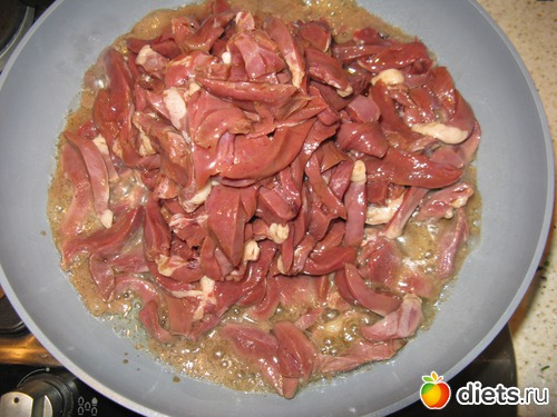 Добавить овощи к сердечкам, немного поджарить и тушить до готовности моркови и лука (можно добавить немного воды) около 15-20 минут