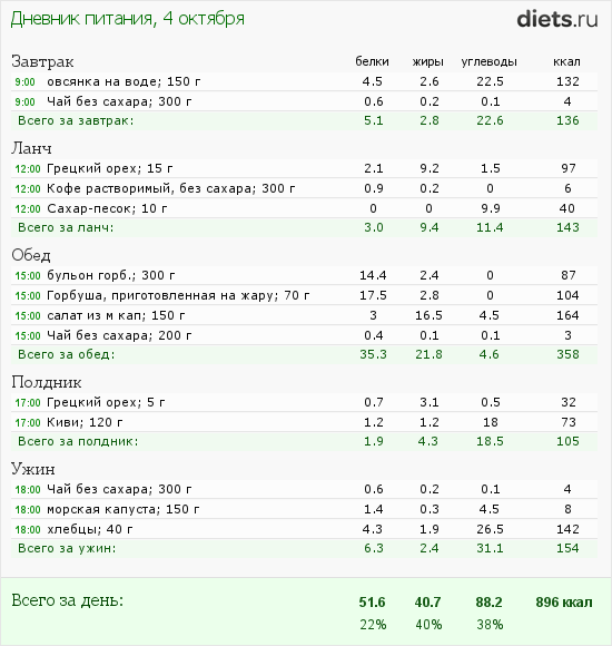 11-ый день: 2 яйца, 150 г говядины, 4 куска ржаного хлеба, салат из овощей, 0,5 литра кефира