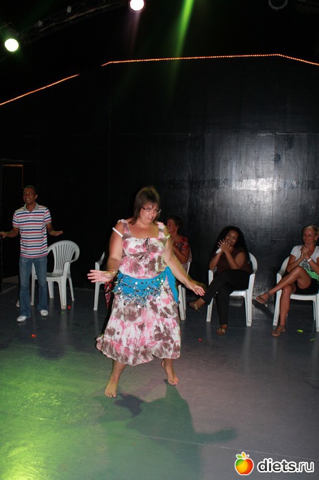 А еще меня поразило количество мужского внимания. Везде у меня находились толпы поклонников. Вдохновленная таким успехом, я даже участвовала в конкурсе "Мисс Отель". Победили в нем все, вот я танцую танец живота: