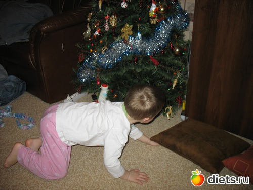 После застолий ночных и фейерверков просыпаемся и несёмся, не одеваясь, к ёлке- в поисках подарков