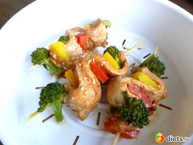 куриный шашлычок на пару с гарниром Блюдо замечательно подходит для обеда, приготовлено без использования масла.