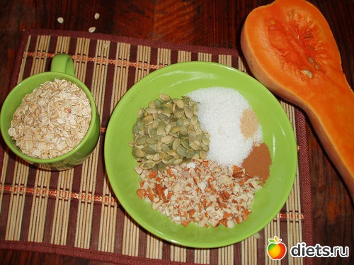 для меня осень тесно связана с тыквой, она такая красивая, из нее столько всего можно приготовить! Когда говорят что не любят тыкву и блюда из нее, то мне кажется что люди просто не нашли "своего" рецепта, в котором будет тыква и который будет нравится. Рецептов из тыквы множество, но я предлагаю поэкспериментировать и приготовить из нее гранолу. Я уверена что это блюдо понравится всем. Ее можно и так есть, можно запивать молоком, можно добавлять в кефир, йогурт, ряженку. На мой взгляд это достойная альтернатива овсянки на завтрак. И уж точно - гораздо лучше покупных мюсли с.. (непонятно с чем, если честно говорить)