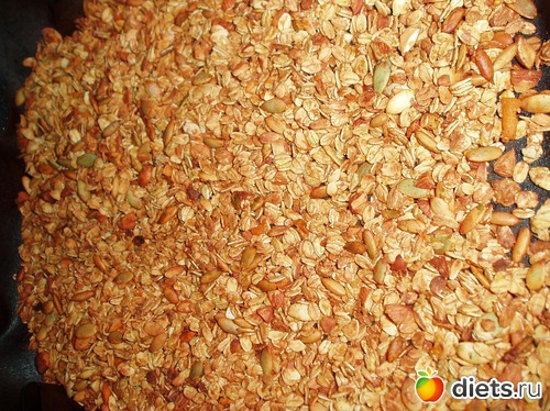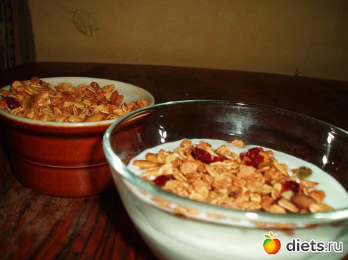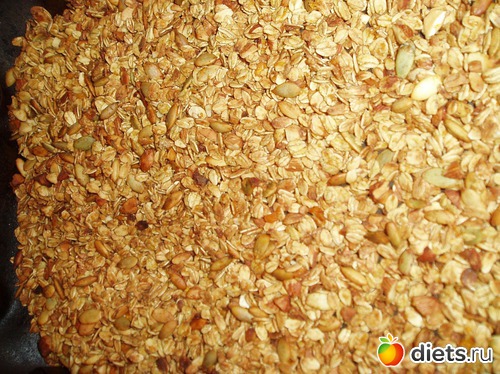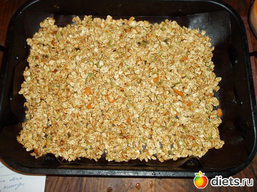 Еще плюс идейка залить Гранолу сиропом (немного, только для того что бы форму придать) и получатся полезные питательные и мегаэнергозарядные козинаки!