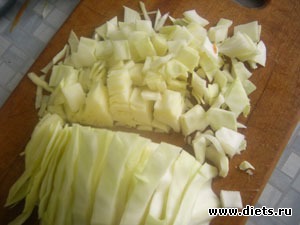 2. Нарезать капусту кубиками и отварить до готовности в соленой воде