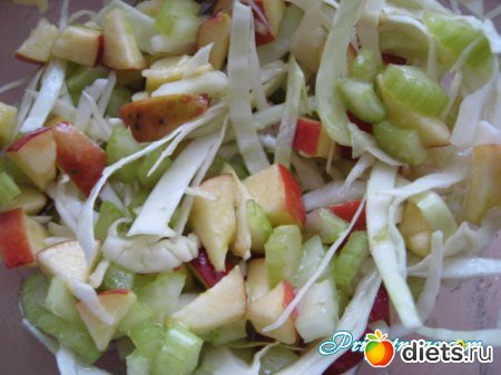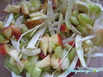 Очищаете и режете яблоки, сельдерей, мелко крошите капусту.