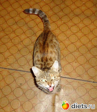 Потом идет - Мурка, ей 5 лет. Она очень ласковая. Обожает моего мужа. Очень любит спать на нас, залезет прямо на грудь или на живот и "тарахтит" от удовольствия.
