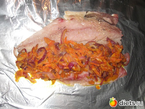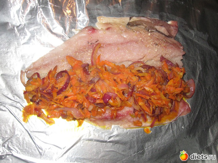 Рыбку выложила на двойной слой фольги, на одну половину выложила овощи