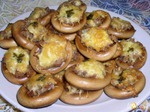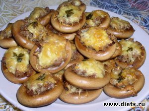 бублики замачиваю в молоке, фарш солю, перчу, добавляю лук, потом фарширую бублики этим. в тарелочке взбиваю яйцо, солю его и перчу, обмакиваю бублики в нем - и на сковородку! нямочка