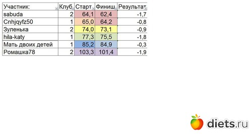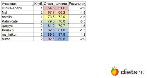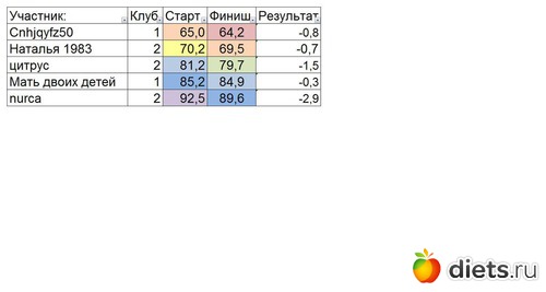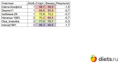Девчонки - все, кто участвовал, поздравляю вас! В этот раз, конечно, наш общий результат похуже, но давайте будем считать это небольшой передышкой перед большим успехом! Сейчас все возьмемся, и у каждой получится к следующему разу стать стройнее! Только прошу вас, если что-то не получается, пишите в клуб, а лучше в группу (в форуме клуба странички быстро заканчиваются и запись закрывается). В группе девочки точно отзовутся и поддержат в трудную минутку. Не прячьте голову в песок, нам нужно добиться стройной фигуры!!!